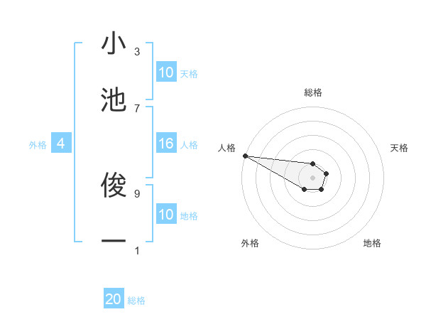 小池 俊一さんの天格は10画の1点!