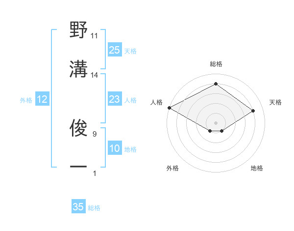 野溝 俊一さんを姓名の画数から五運を鑑定