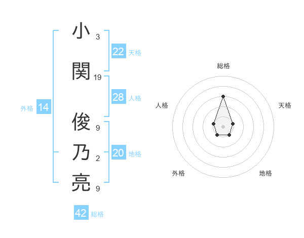 小関 俊乃亮さんを姓名の画数から五運を鑑定