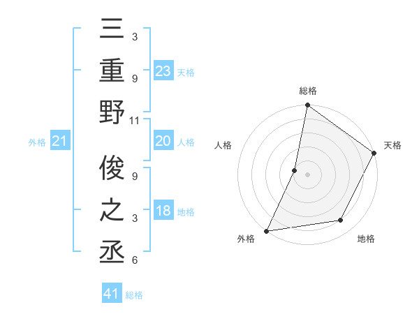 三重野 俊之丞さんを姓名の画数から五運を鑑定