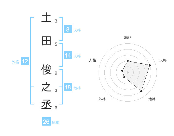 土田 俊之丞さんの総格は26画の2点!