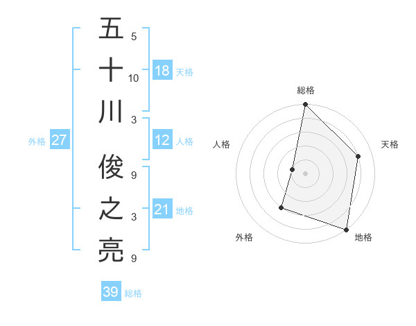 五十川 俊之亮さんを姓名の画数から五運を鑑定