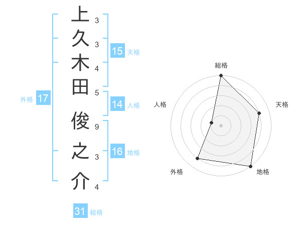 上久木田 俊之介さんを姓名の画数から五運を鑑定