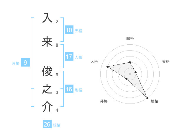 入来 俊之介さんの総格は26画の2点!