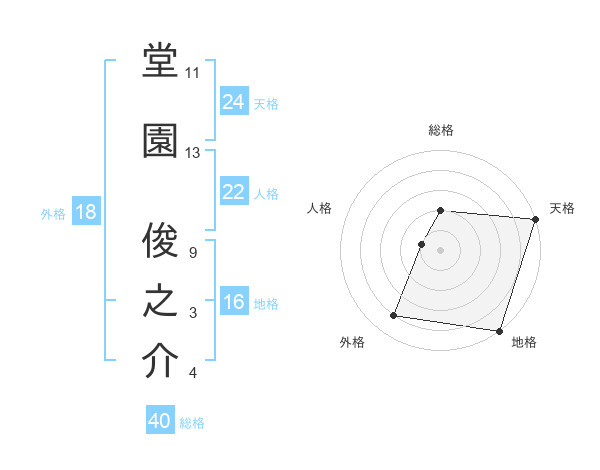 堂園 俊之介さんを姓名の画数から五運を鑑定