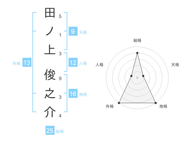 田ノ上 俊之介さんを姓名の画数から五運を鑑定