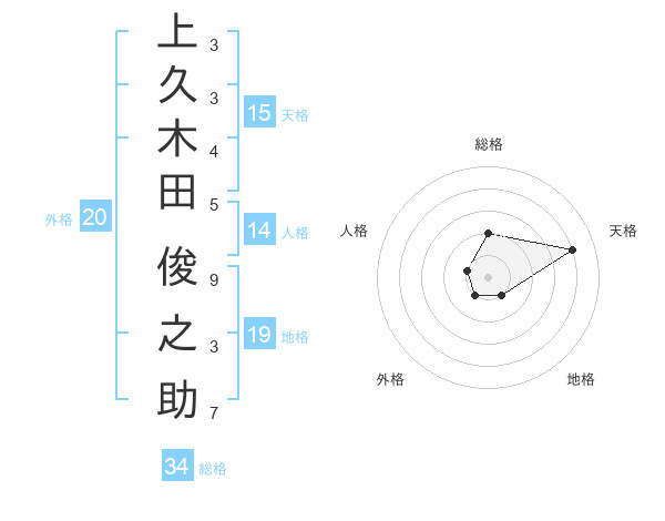 上久木田 俊之助さんを姓名の画数から五運を鑑定