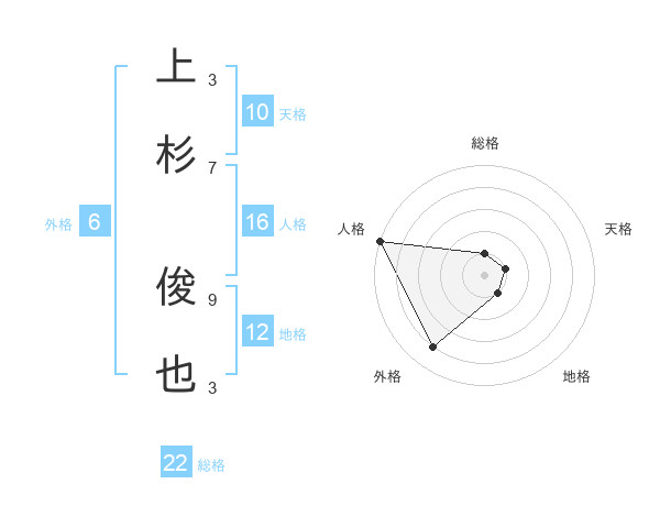 上杉 俊也さんの総格は22画の1点!