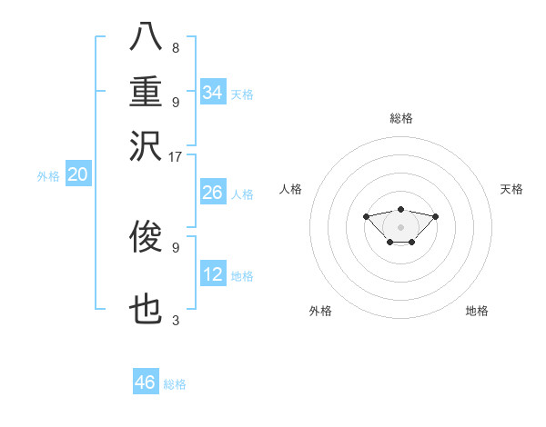 八重沢 俊也さんを姓名の画数から五運を鑑定