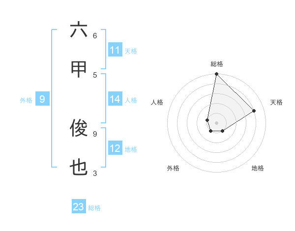 六甲 俊也さんの総格は23画の5点!