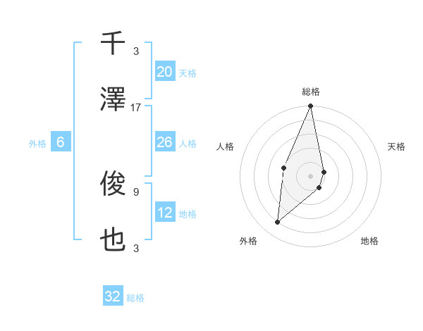 千澤 俊也さんの総格は32画の5点!