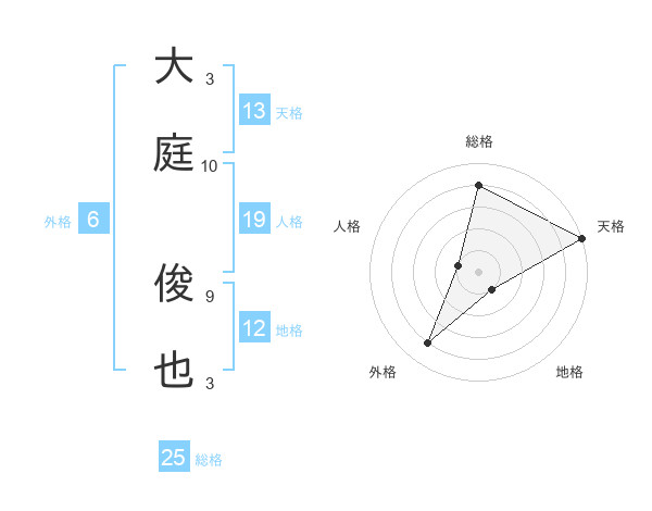大庭 俊也さんの天格は13画の5点!
