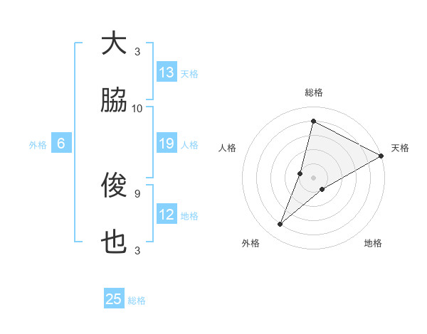 大脇 俊也さんの天格は13画の5点!