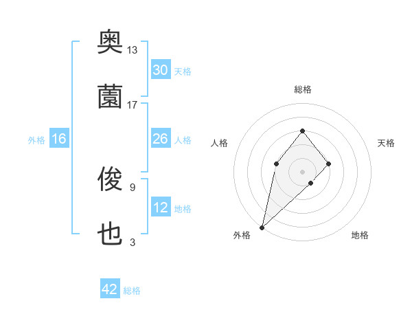 奥薗 俊也さんの外格は16画の5点!