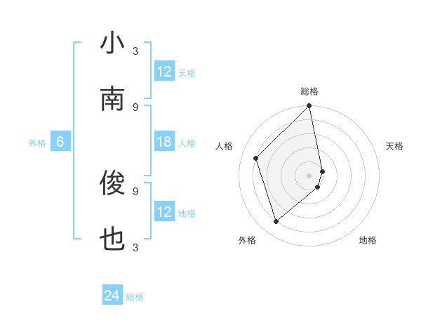 小南 俊也さんの天格は12画の1点!