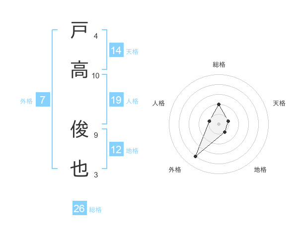 戸高 俊也さんを姓名の画数から五運を鑑定