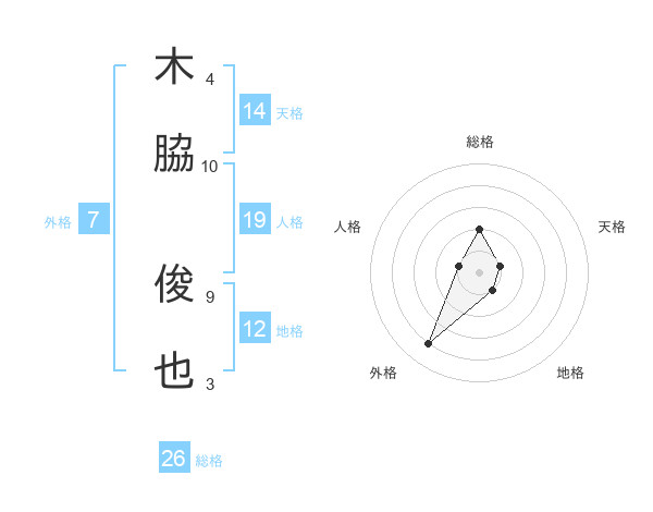 木脇 俊也さんの外格は7画の4点!
