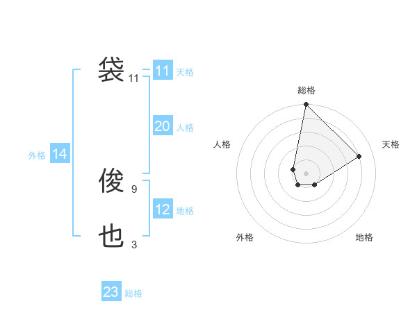 袋 俊也さんの総格は23画の5点!