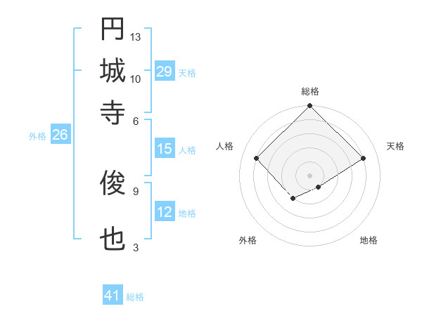 円城寺 俊也さんを姓名の画数から五運を鑑定