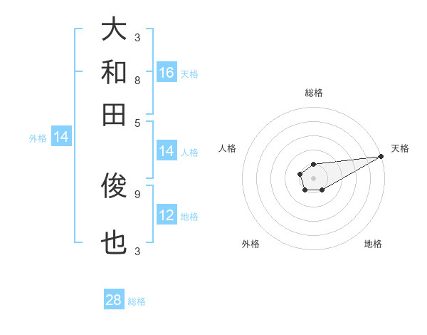 大和田 俊也さんを姓名の画数から五運を鑑定
