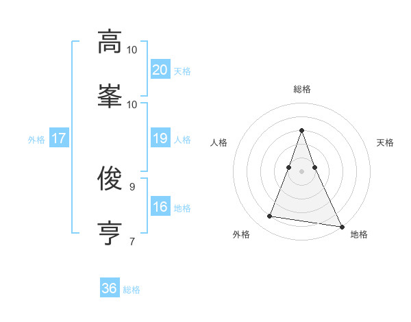 高峯 俊亨さんを姓名の画数から五運を鑑定