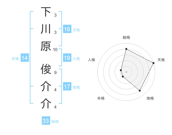 下川原 俊介介さんを姓名の画数から五運を鑑定