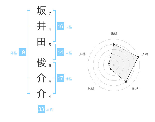 坂井田 俊介介さんを姓名の画数から五運を鑑定