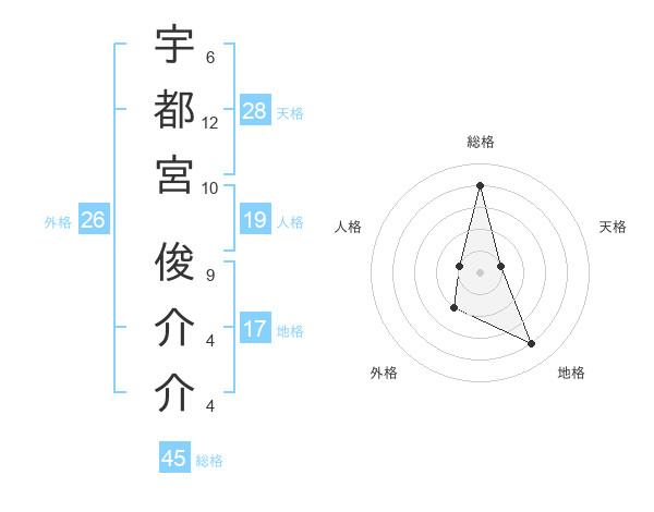 宇都宮 俊介介さんを姓名の画数から五運を鑑定