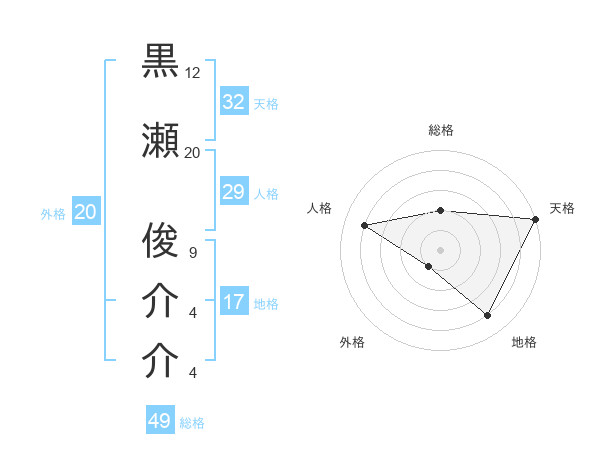 黒瀬 俊介介さんの天格は32画の5点!