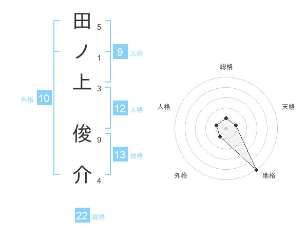 田ノ上 俊介さんを姓名の画数から五運を鑑定
