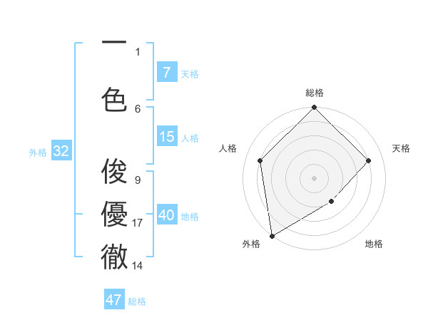 一色 俊優徹さんを姓名の画数から五運を鑑定