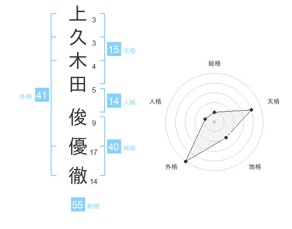 上久木田 俊優徹さんを姓名の画数から五運を鑑定
