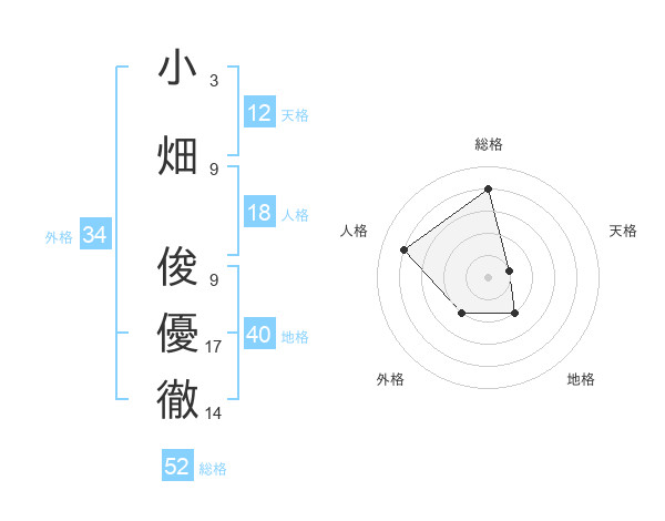 小畑 俊優徹さんを姓名の画数から五運を鑑定