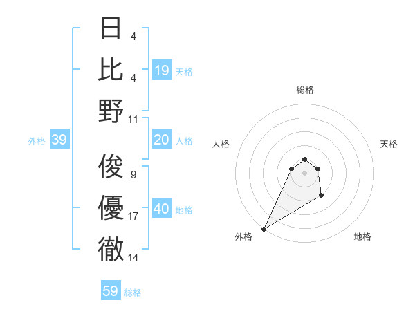 日比野 俊優徹さんを姓名の画数から五運を鑑定