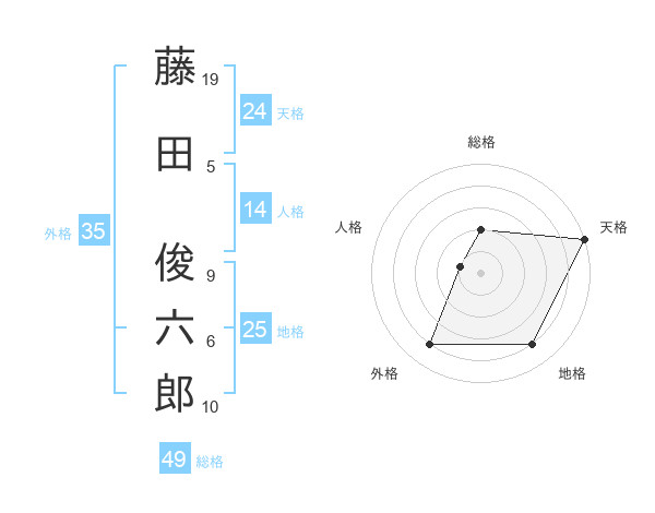 藤田 俊六郎さんを姓名の画数から五運を鑑定