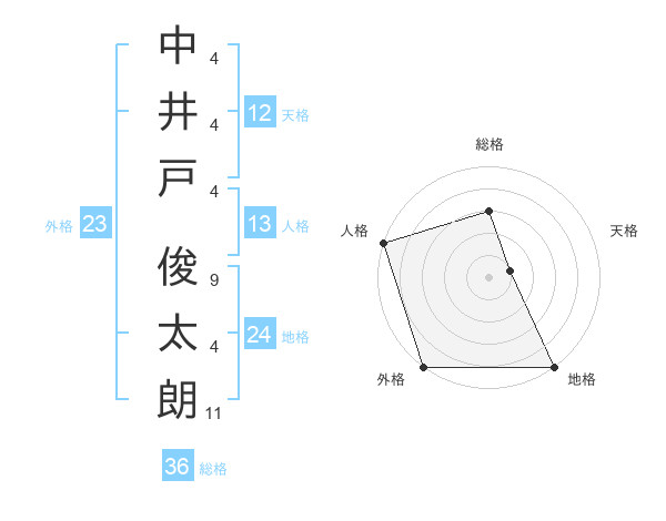 中井戸 俊太朗さんを姓名の画数から五運を鑑定