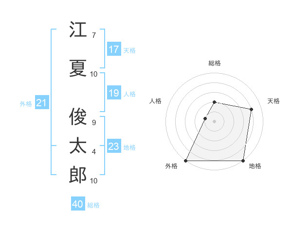 江夏 俊太郎さんの外格は21画の5点!