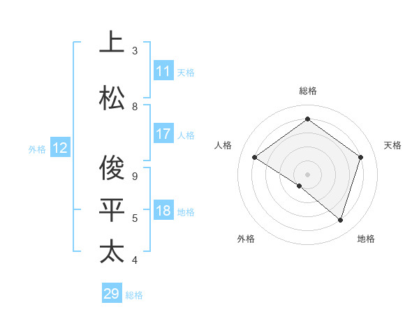 上松 俊平太さんを姓名の画数から五運を鑑定