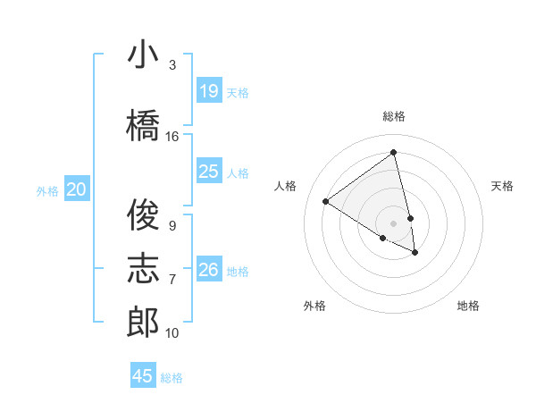 小橋 俊志郎さんを姓名の画数から五運を鑑定