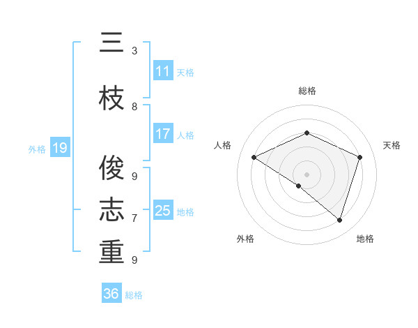 三枝 俊志重さんを姓名の画数から五運を鑑定