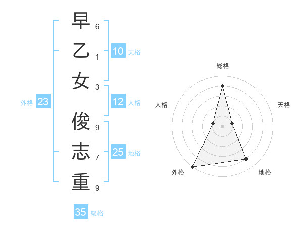 早乙女 俊志重さんを姓名の画数から五運を鑑定