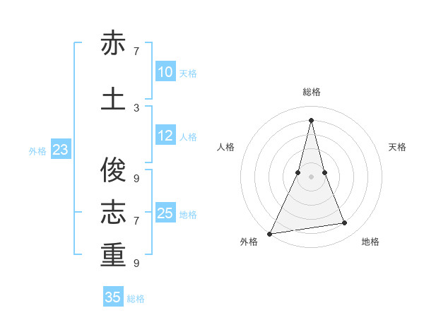 赤土 俊志重さんの総格は35画の4点!