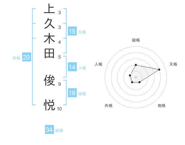 上久木田 俊悦さんを姓名の画数から五運を鑑定