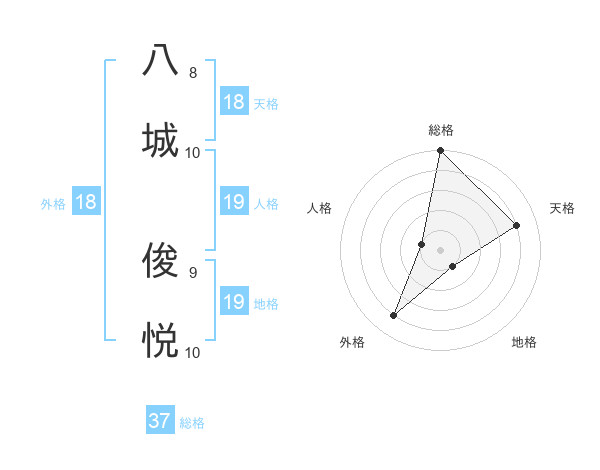 八城 俊悦さんの総格は37画の5点!