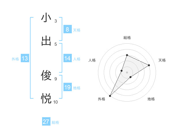 小出 俊悦さんを姓名の画数から五運を鑑定