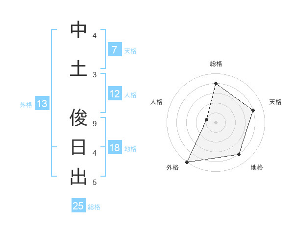 中土 俊日出さんの外格は13画の5点!