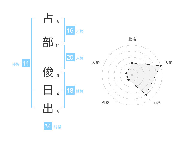 占部 俊日出さんの天格は16画の5点!