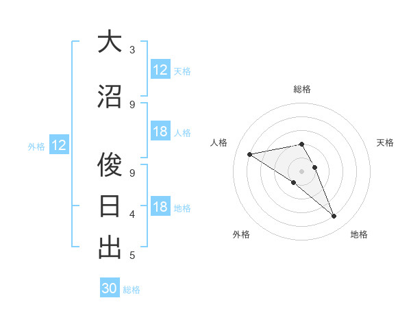 大沼 俊日出さんを姓名の画数から五運を鑑定