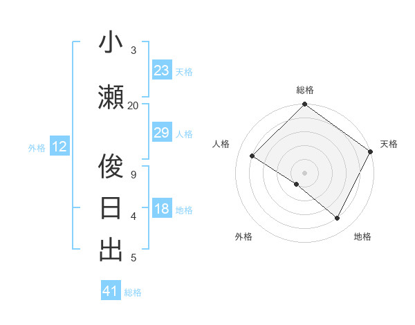 小瀬 俊日出さんを姓名の画数から五運を鑑定