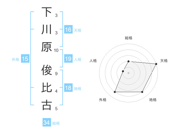 下川原 俊比古さんを姓名の画数から五運を鑑定